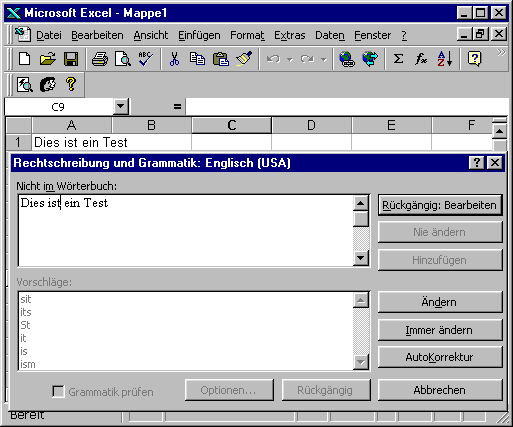 eingeschränkten Rechtschreibprüfung von Excel ihre