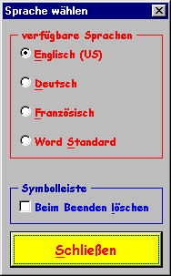 Informationen über die Spracheinstellungen und die Symbolleiste